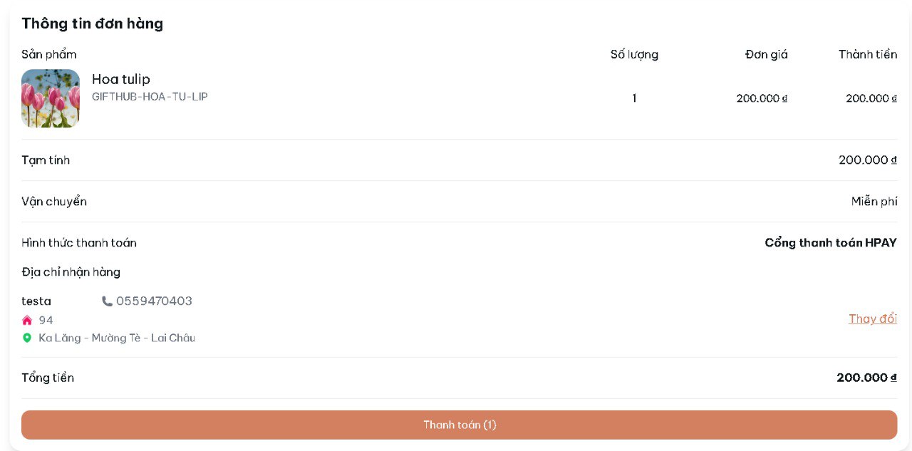 Bước 1 : Khách hàng kiểm tra thông tin đơn hàng trên hóa đơn. Chọn “Thanh Toán”