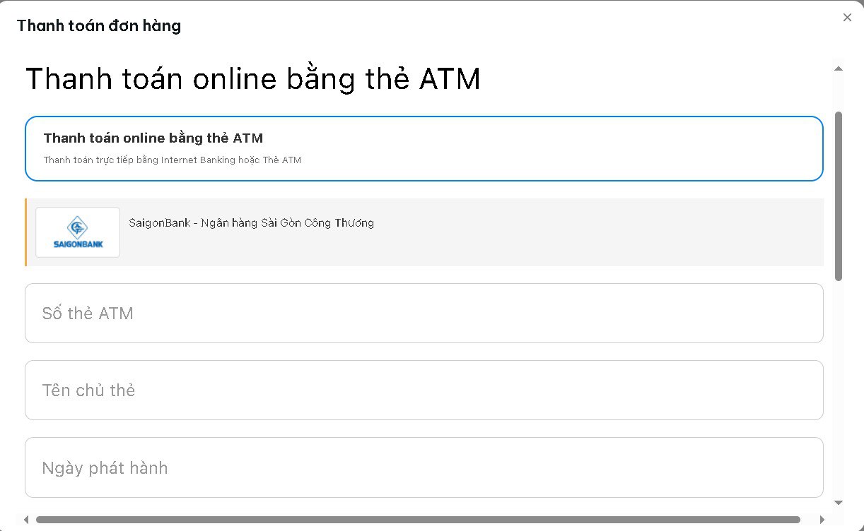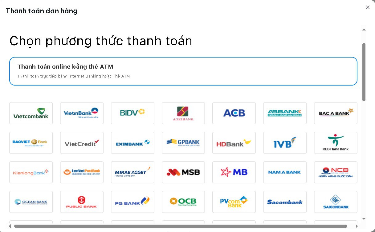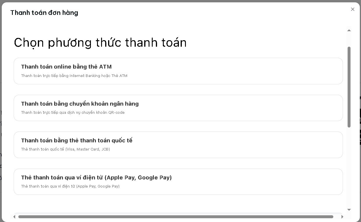 Bước 2 : Khách hàng lựa chọn phương thức thanh toán phù hợp theo nhu cầu”